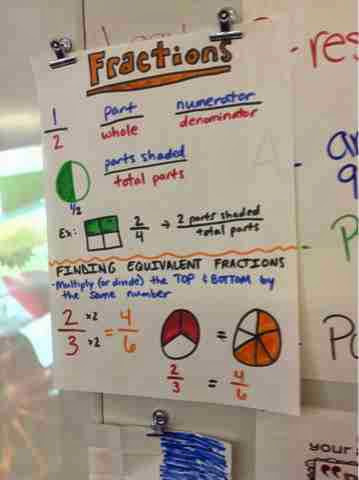 When finding an equivalent fraction you can multiply the numerator or denominator by the same number. Look at the bottom of the anchor chart to help you.